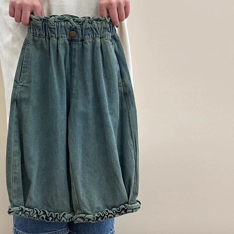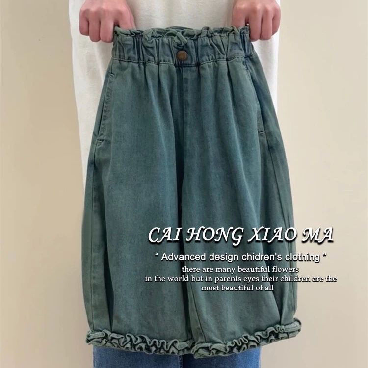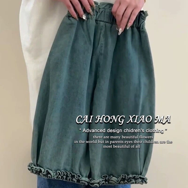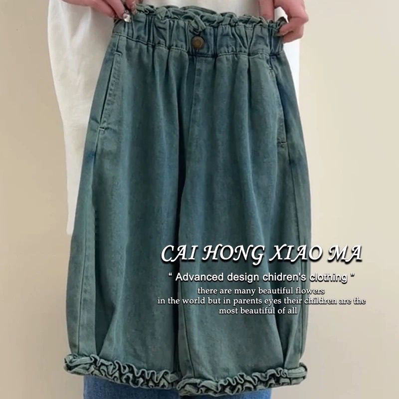 女童牛仔裤韩版春秋款弯刀裤休闲宽松宝宝洋气百搭灯笼裤儿童裤子