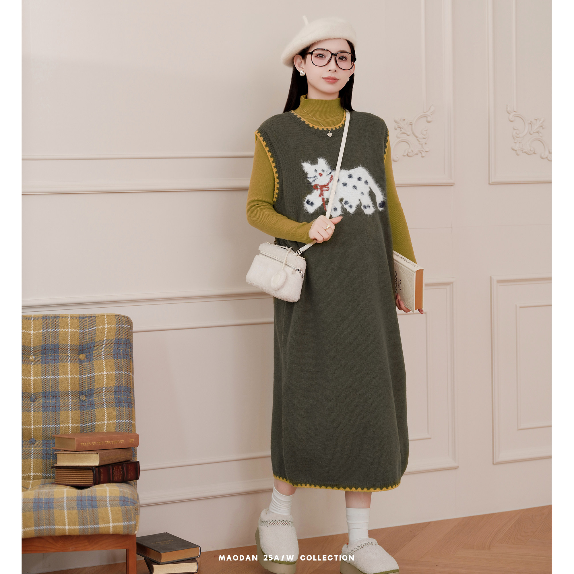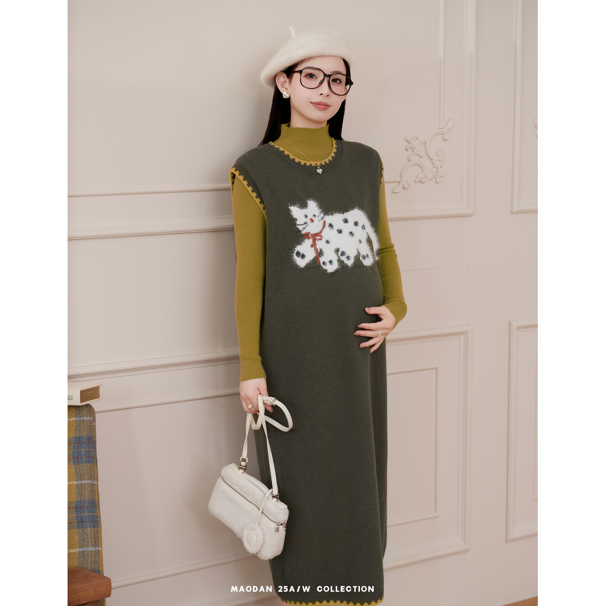 猫单【芥末奶绿】娜娜的孕期穿搭孕妇套装秋冬新品时尚甜美背心裙