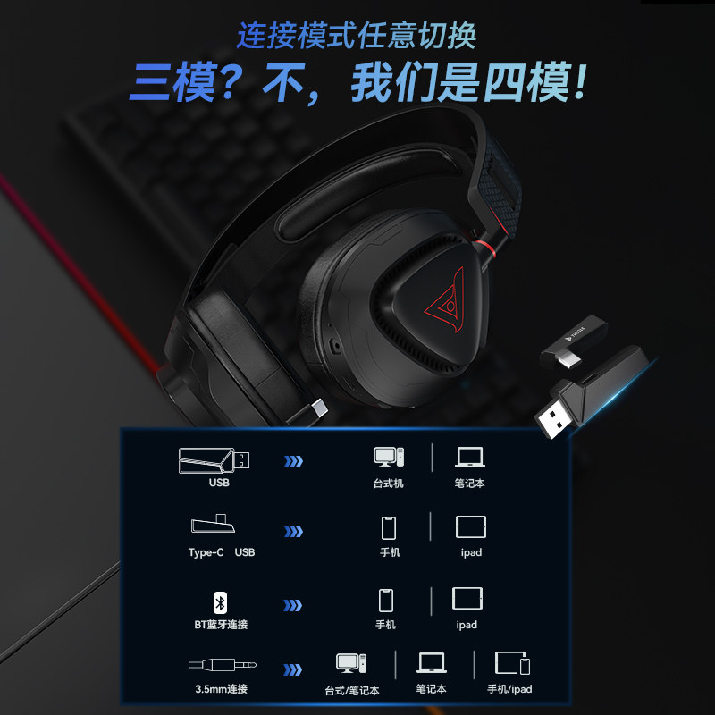 钛度THS318轻鸾四模无线蓝牙头戴式耳机电竞游戏电脑通用耳麦2.4G
