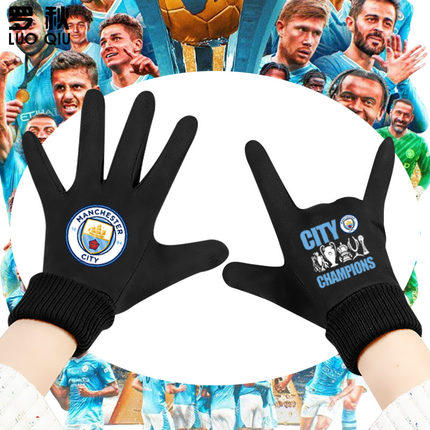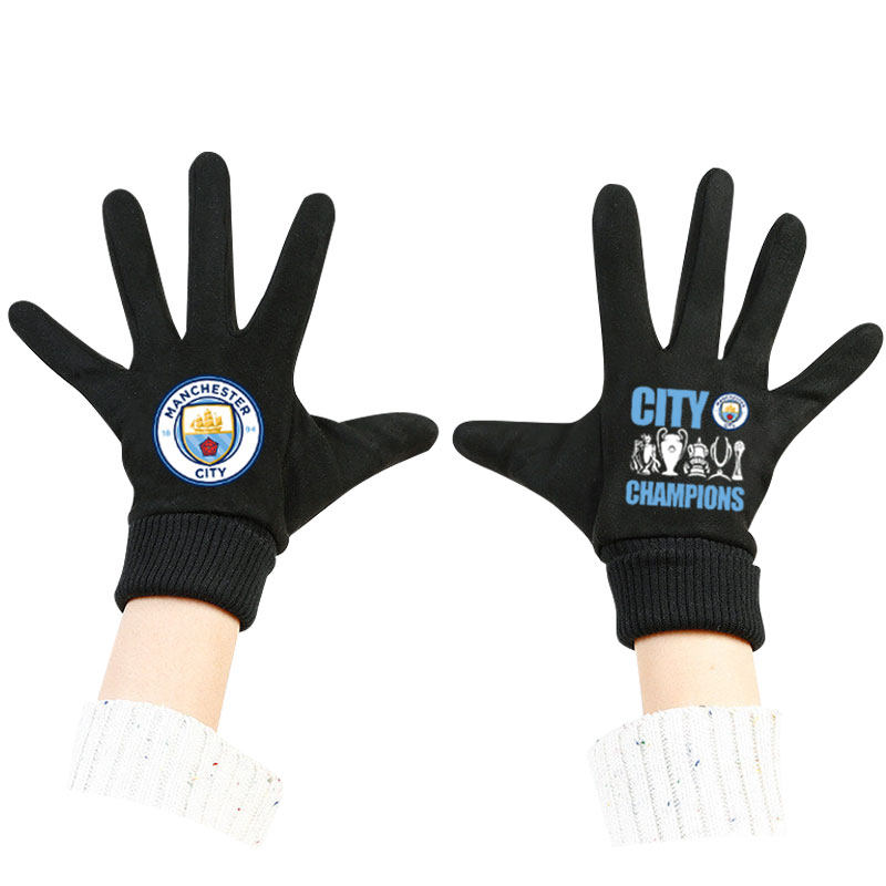2023曼城队五冠王夺冠军纪念可触屏手套男女骑行车分指保暖