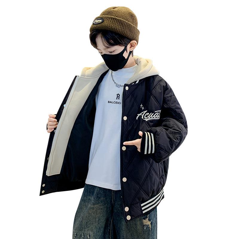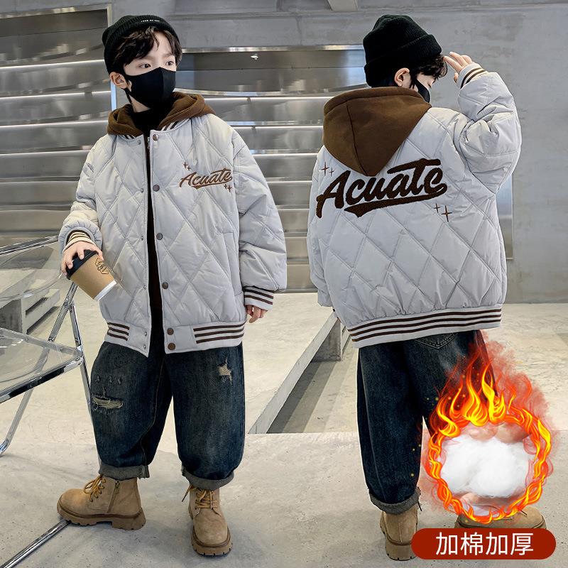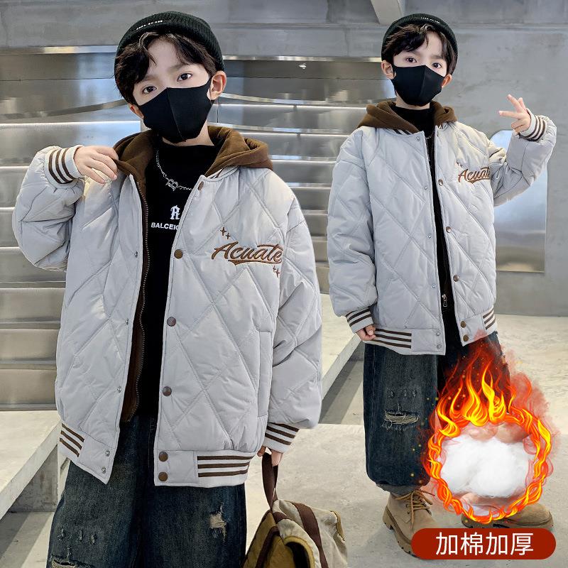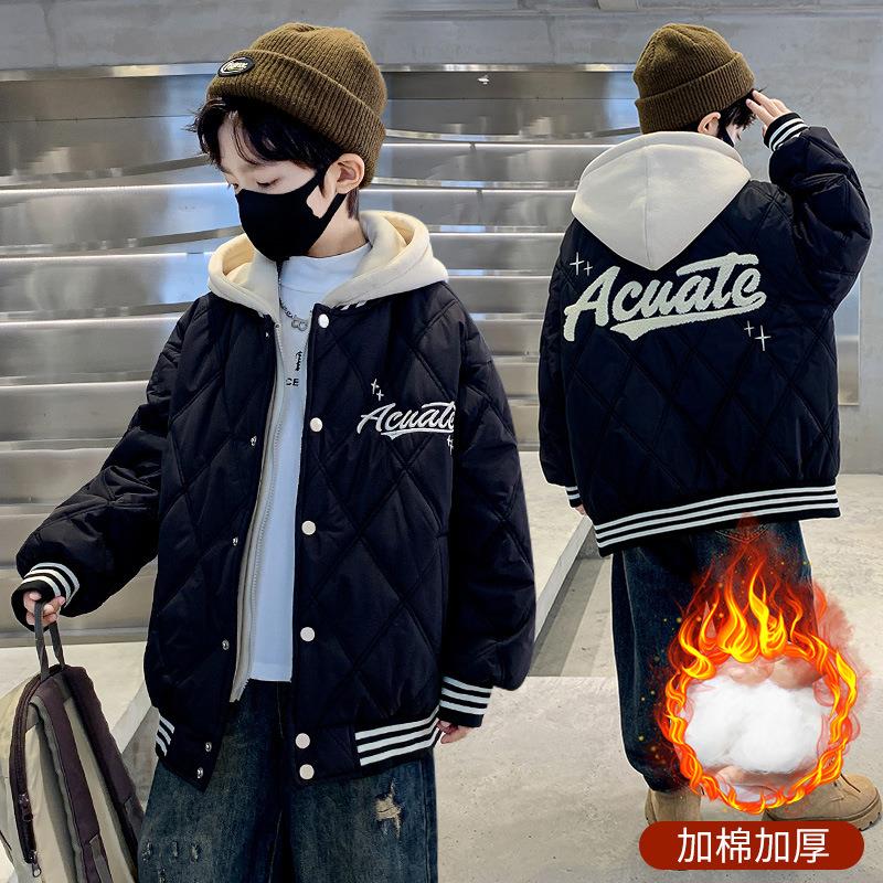 男童冬装棉衣加厚外套2025新款冬季棉袄中大童假两件儿童冬款棉服