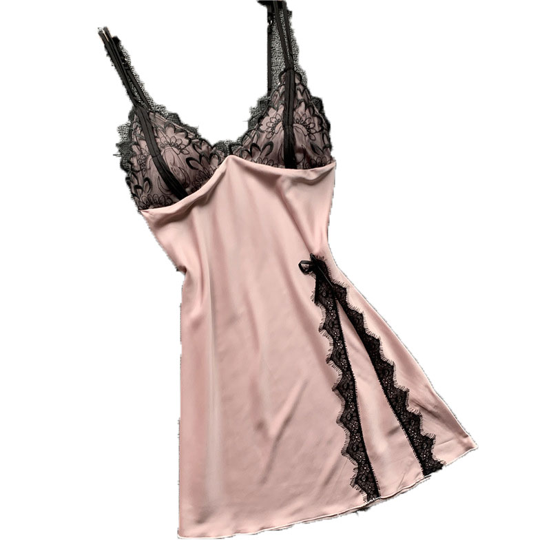 睡衣女夏季吊带性感冰丝带胸垫蕾丝开叉睡裙女薄款2025年新款短裙