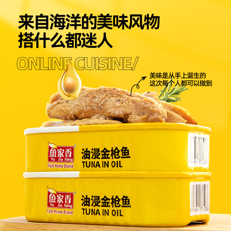 鱼家香低钠水浸金枪鱼罐头低脂健身鱼肉三明治寿司整块鱼排吞拿鱼