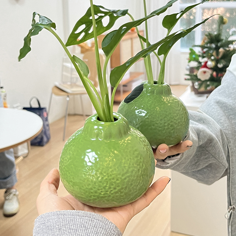 创意仿真橘子水培花瓶陶瓷插花小瓶高级感客厅前台办公室桌面摆件