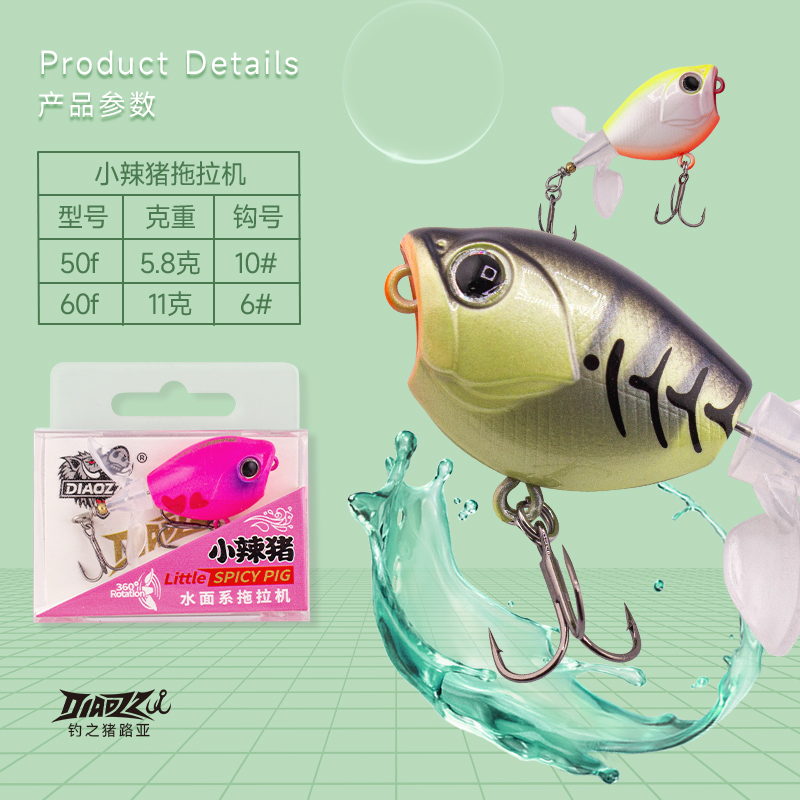 钓之猪路亚饵小辣猪拖拉机水面微物迷你双螺旋桨浮水鲈鱼翘嘴假饵