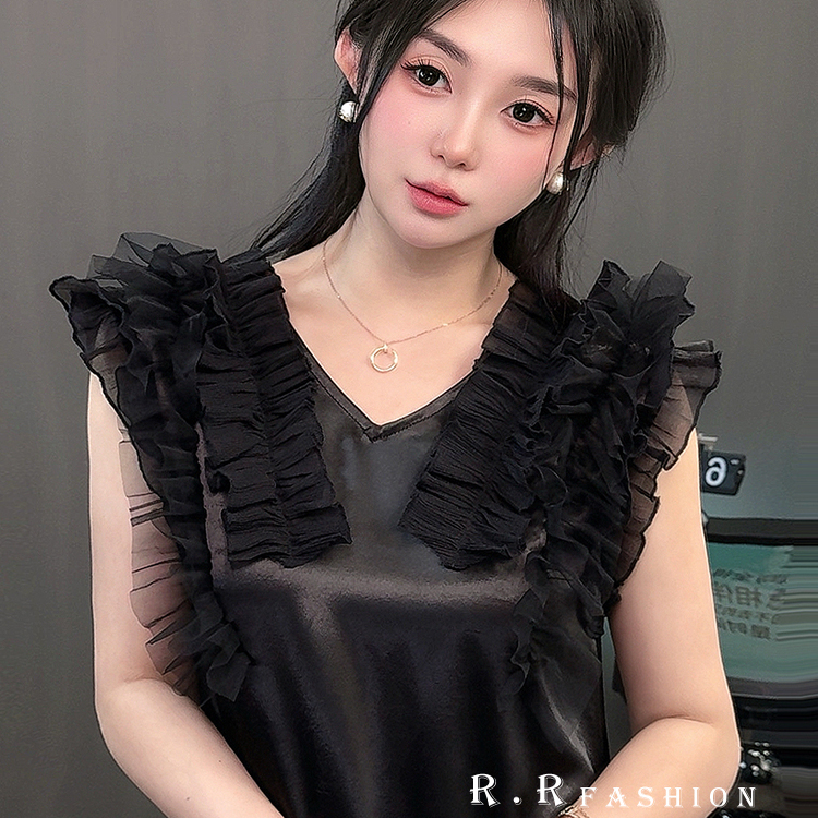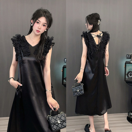 无袖连衣裙女2025夏季新款法式纯色荷叶边V领长裙百搭减龄裙子