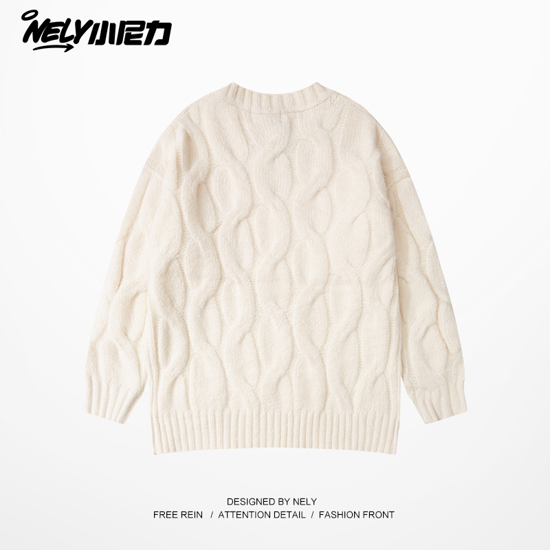 NELY小尼力2025秋冬慵懒风麻花圆领毛衣男女宽松打底衫针织毛衫