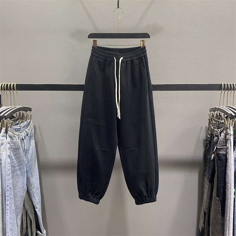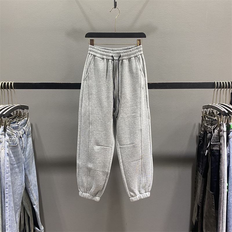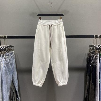 加绒加厚运动卫裤女2025秋冬松紧腰抽绳宽松九分束脚哈伦裤休闲裤
