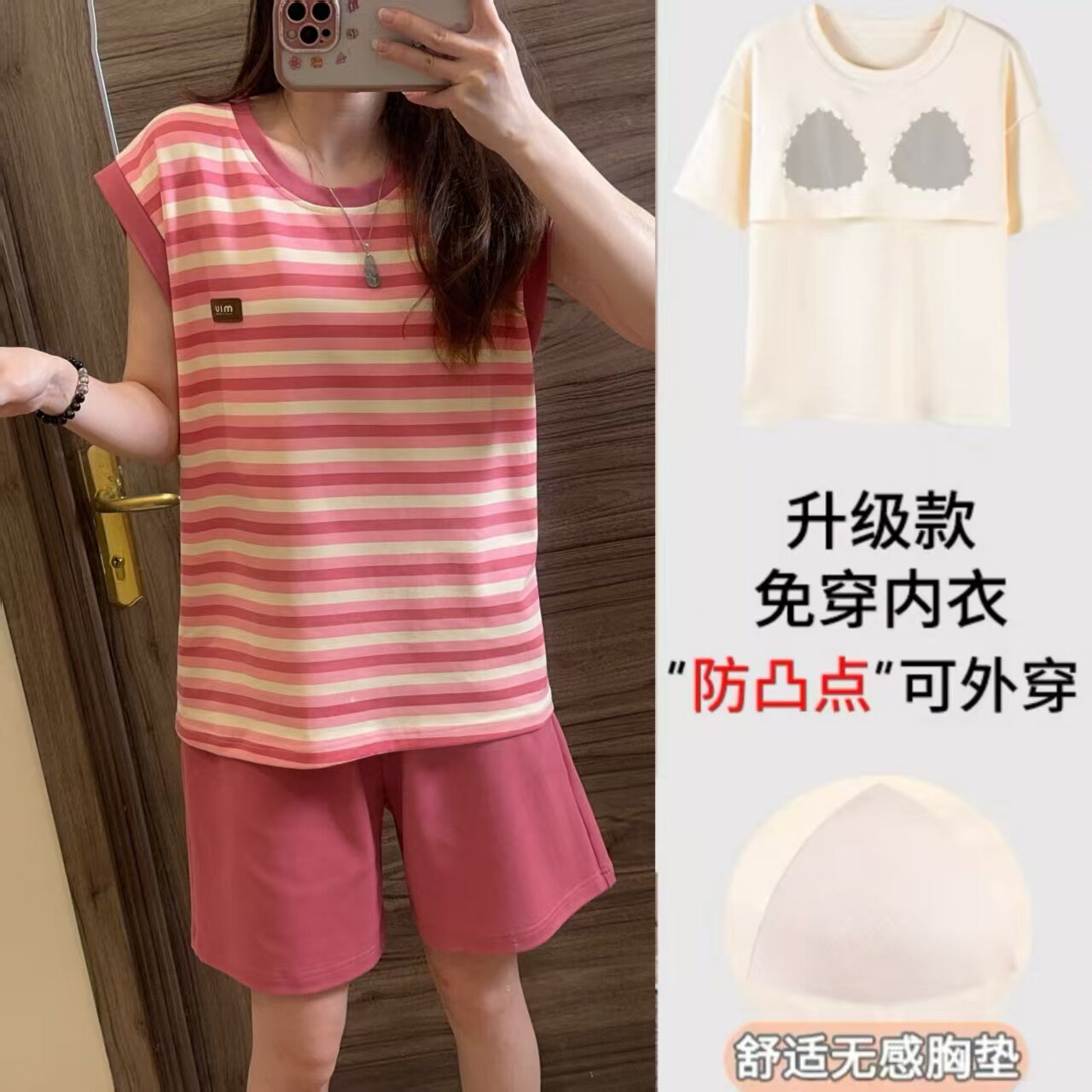 2025超火坎肩睡衣女夏季带胸垫纯棉无袖背心短裤薄款甜美家居服