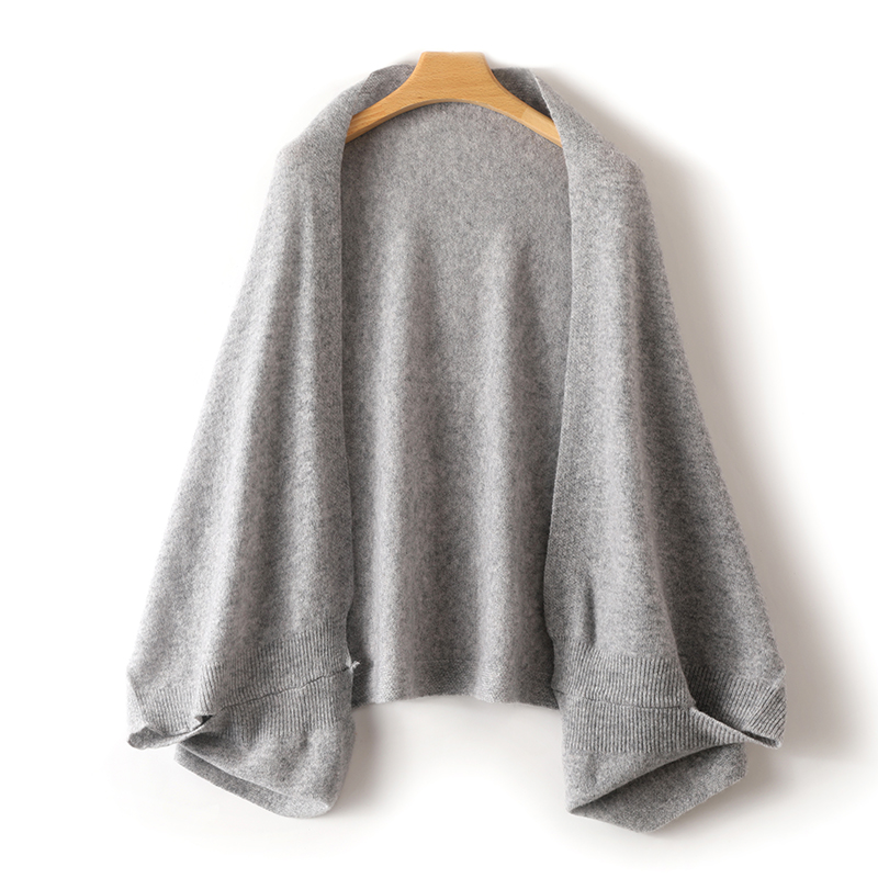 秋冬新款女纯羊毛针织披肩围巾两用空调房薄款宽松百搭开衫外套