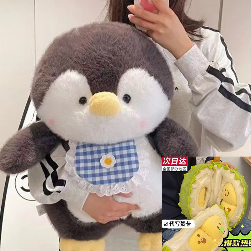 企鹅榴莲玩偶可拆卸可撕拉可剥皮解压毛绒创意可爱水果玩偶抱枕