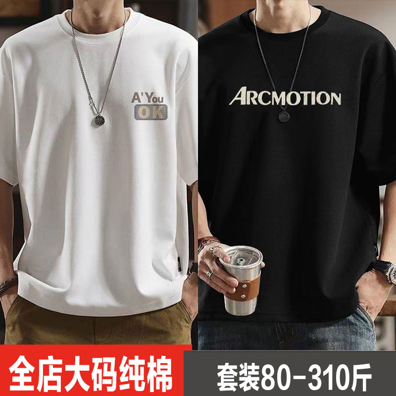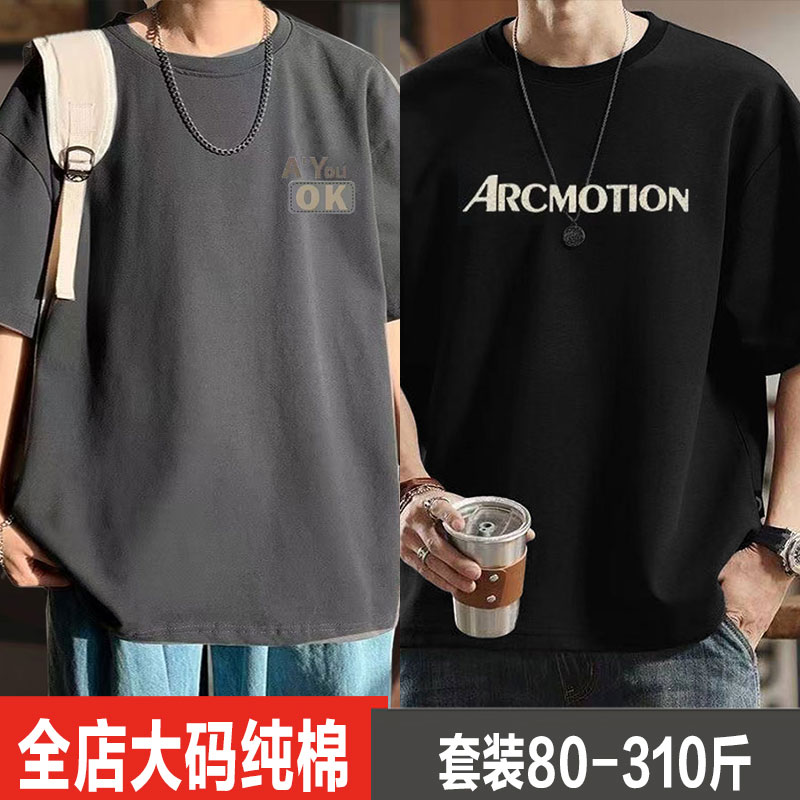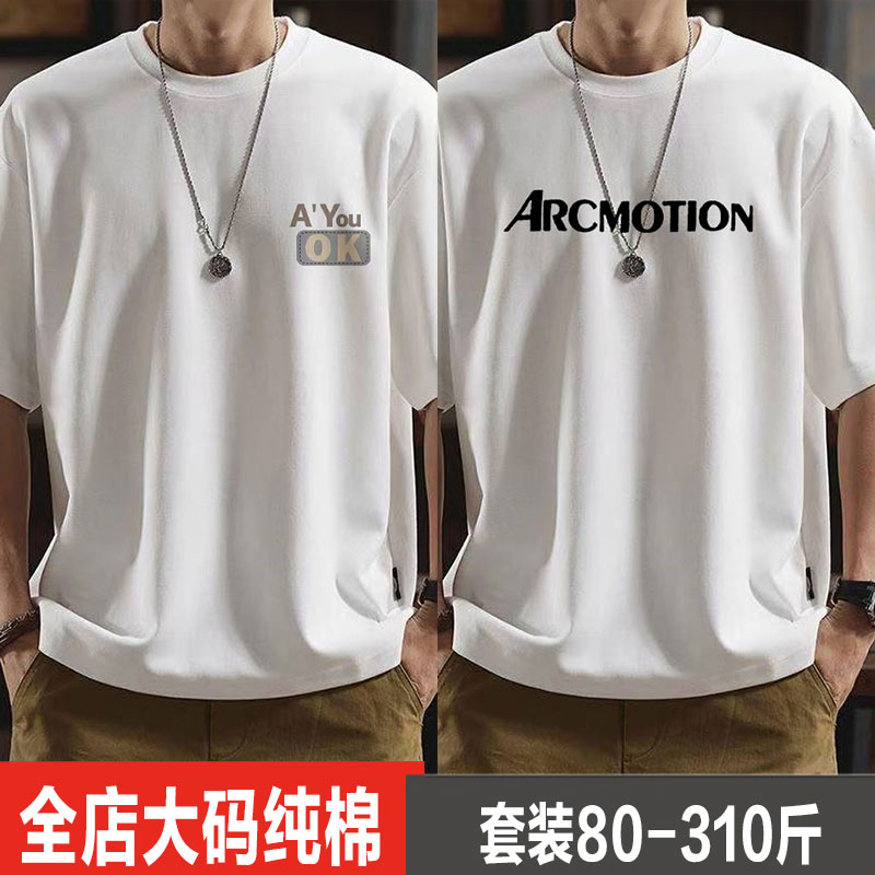 大码t恤男士夏季日系潮牌字母印花休闲上衣宽松纯棉重磅肥佬男装