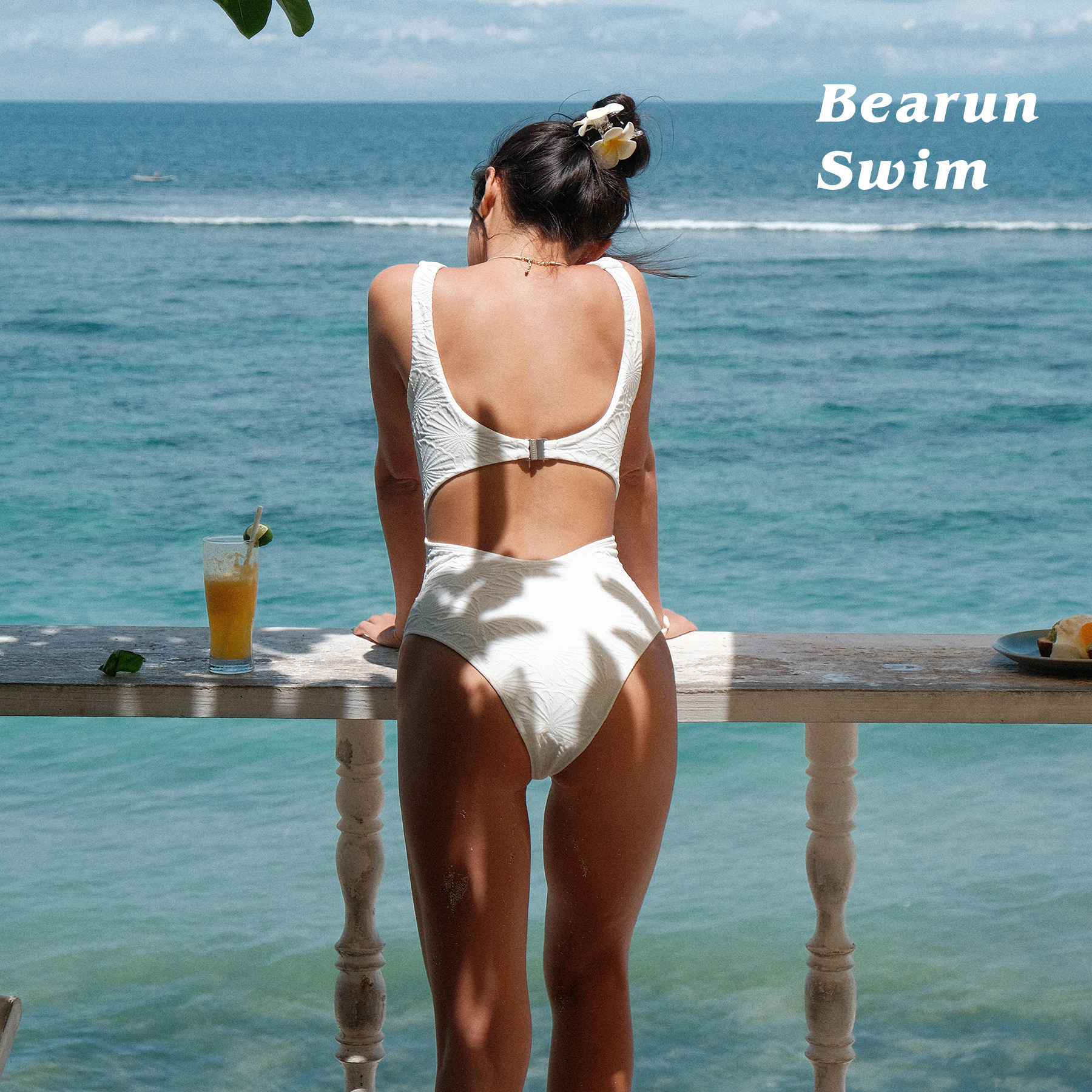 BEARUN SWIM 白色温泉连体泳衣2025小胸度假比基尼吊带连身泳装