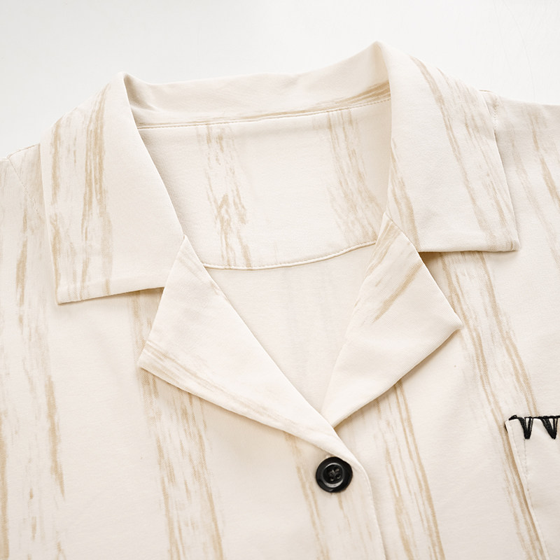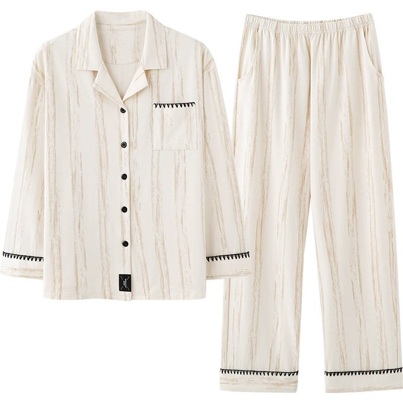 马克公主情侣睡衣女春秋高级扎染纯棉长袖套装可外穿条纹家居服男