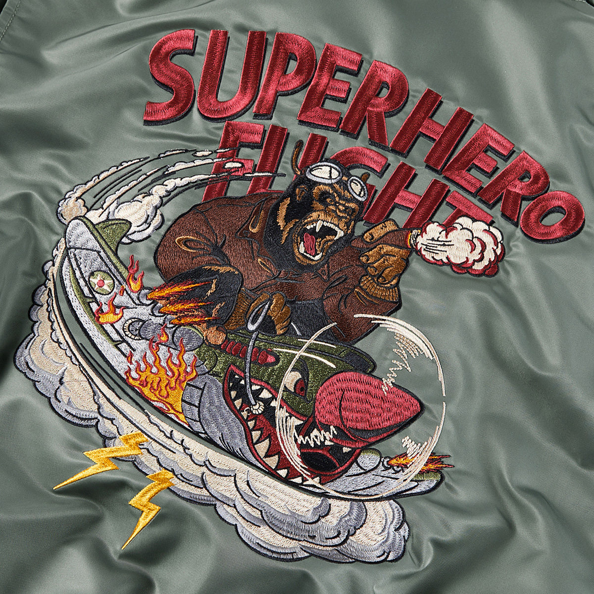 猩猩复古刺绣翻领飞行员夹克外套
