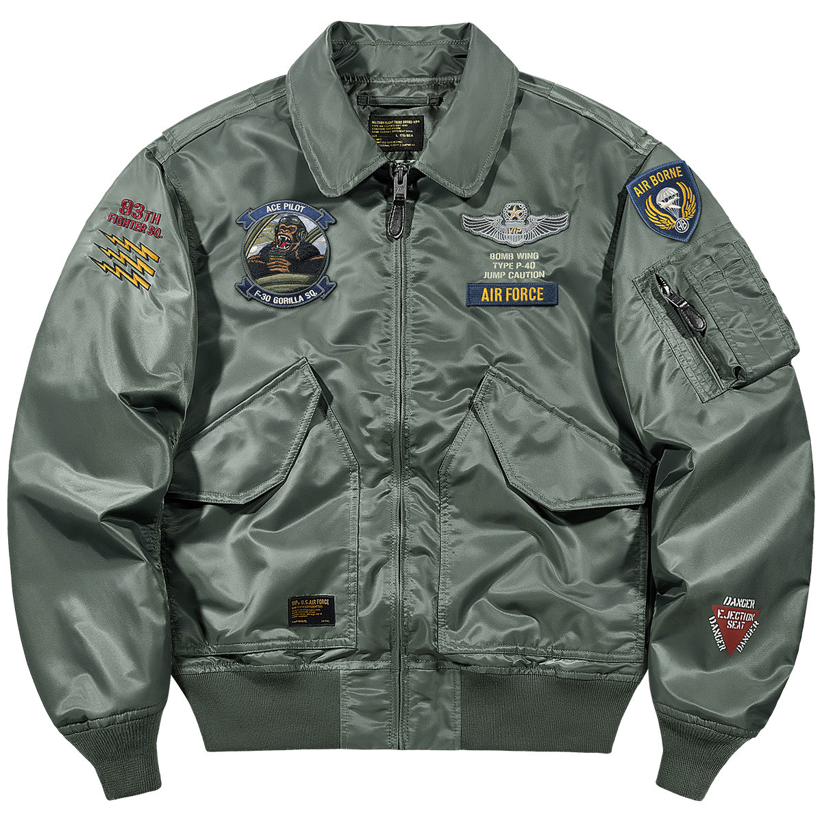 VIP潮牌美式复古翻领飞行员夹克男春秋季宽松bomber空军刺绣外套