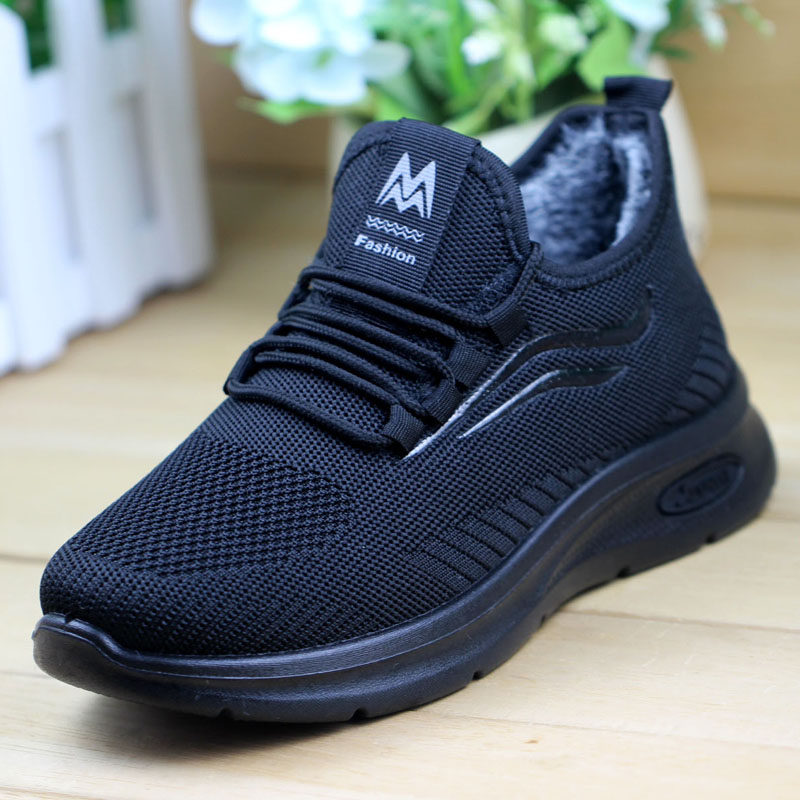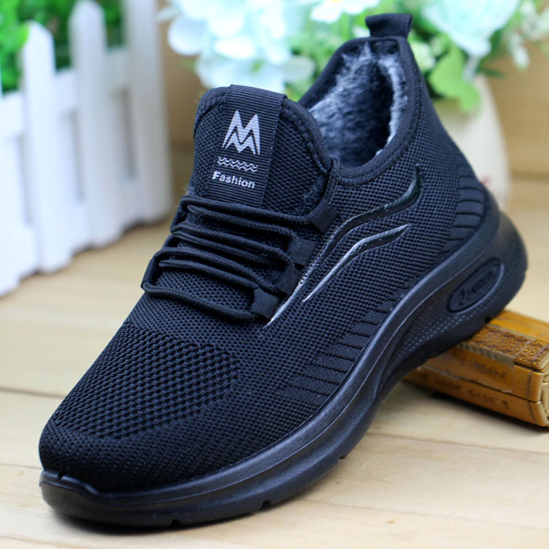 老北京布鞋女秋冬季加绒妈妈鞋软底防滑棉鞋中老年黑色休闲工作鞋