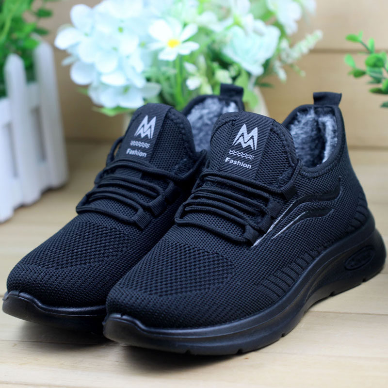 纯黑软底防滑休闲工作鞋女棉鞋