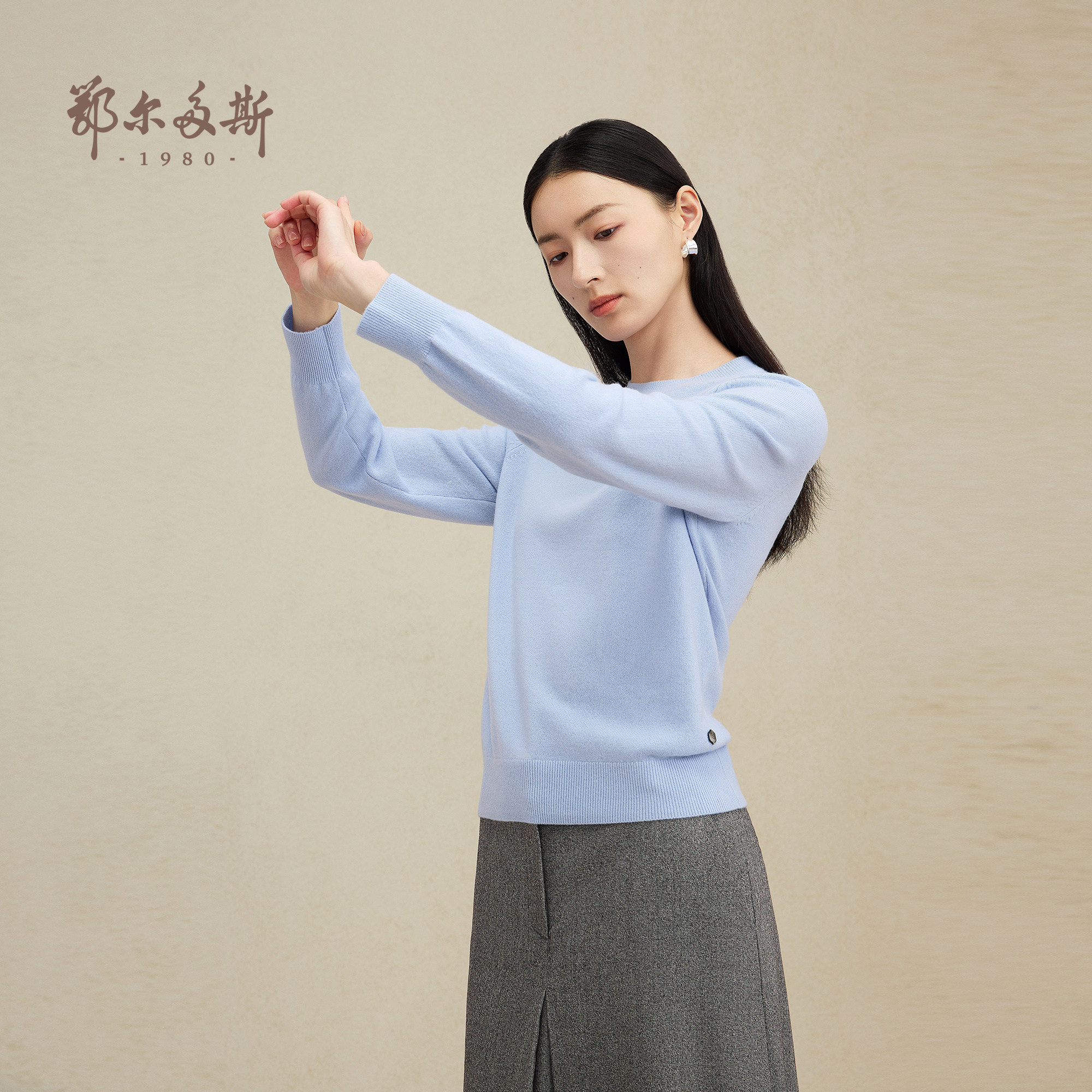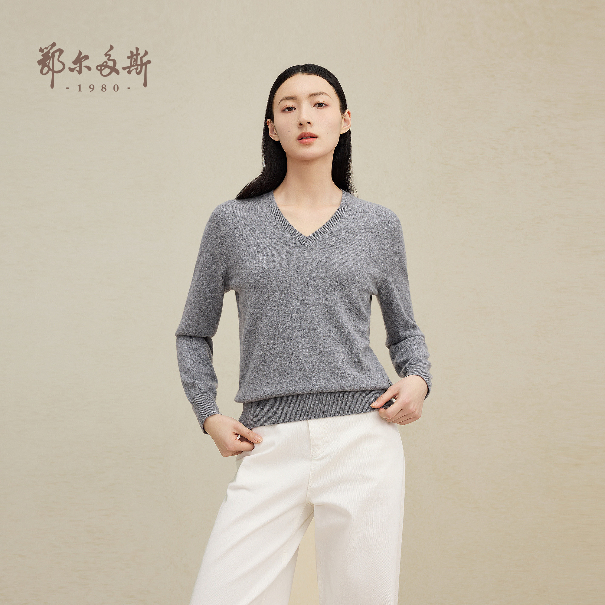 鄂尔多斯1980 圆领/V领纯羊绒针织衫女秋冬通勤百搭套衫