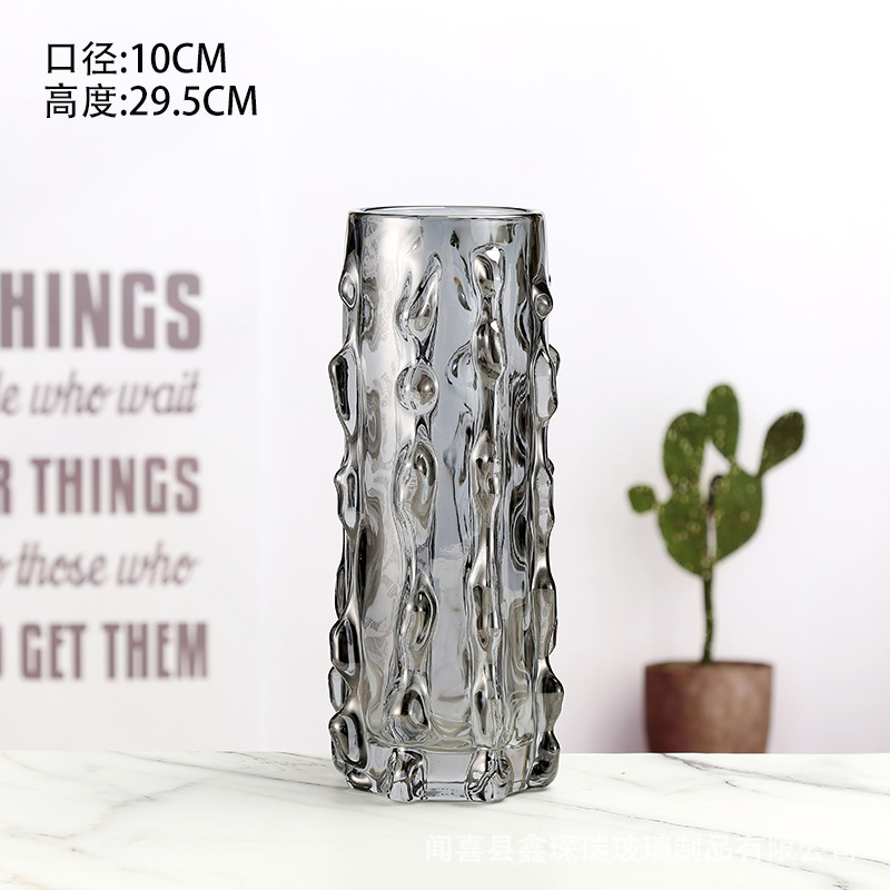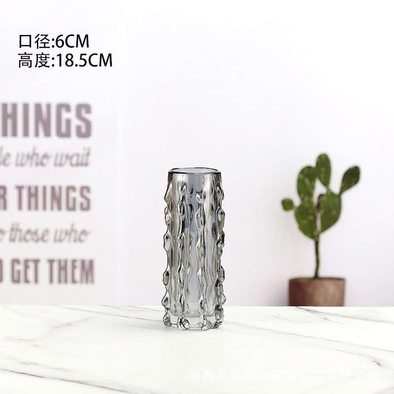 欧式新款透明玻璃花瓶电镀水养水培居家客厅插花装饰艺术摆件