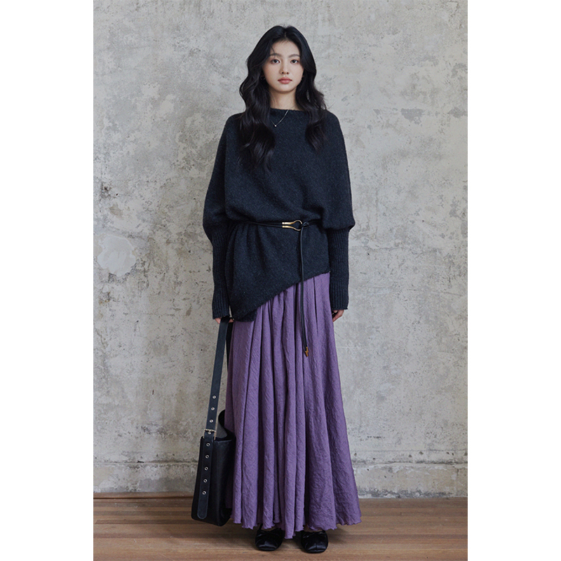贰羊设计【乐檬】新中式禅意紫色高腰半身裙天丝a字长裙大摆伞裙