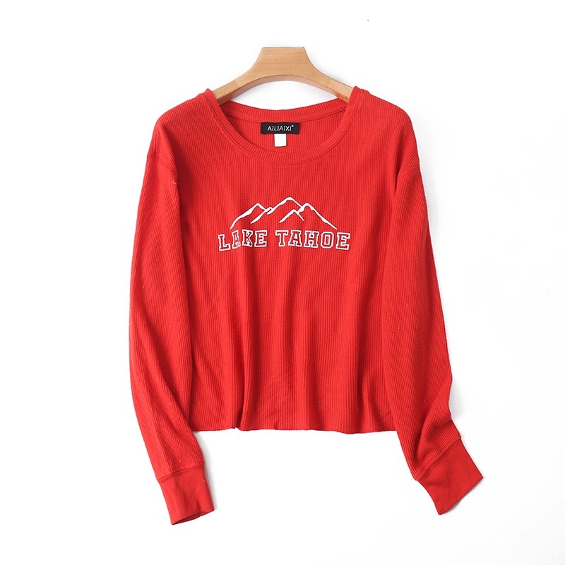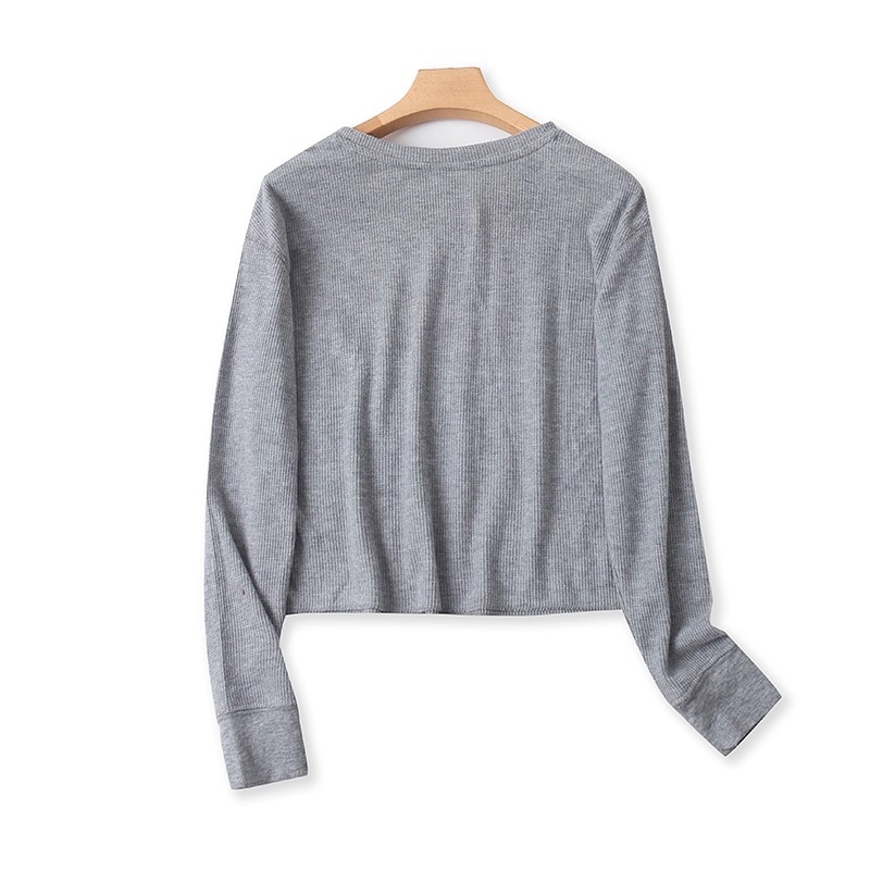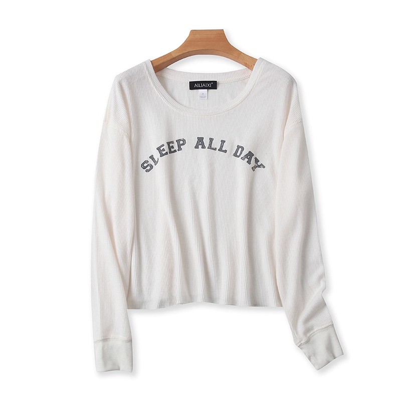 外贸圆领字母针织T恤衫 春秋新款长袖短款弹力女打底衫上衣 18443