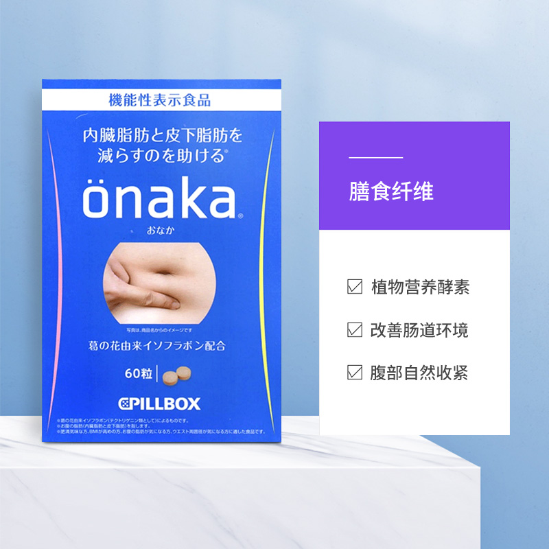 【自营】2盒*日本PILLBOX ONAKA膳食纤维营养葛花植物酵素60粒/盒