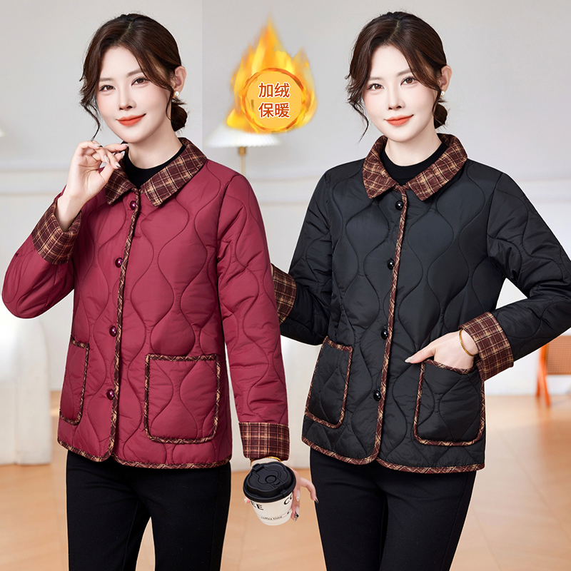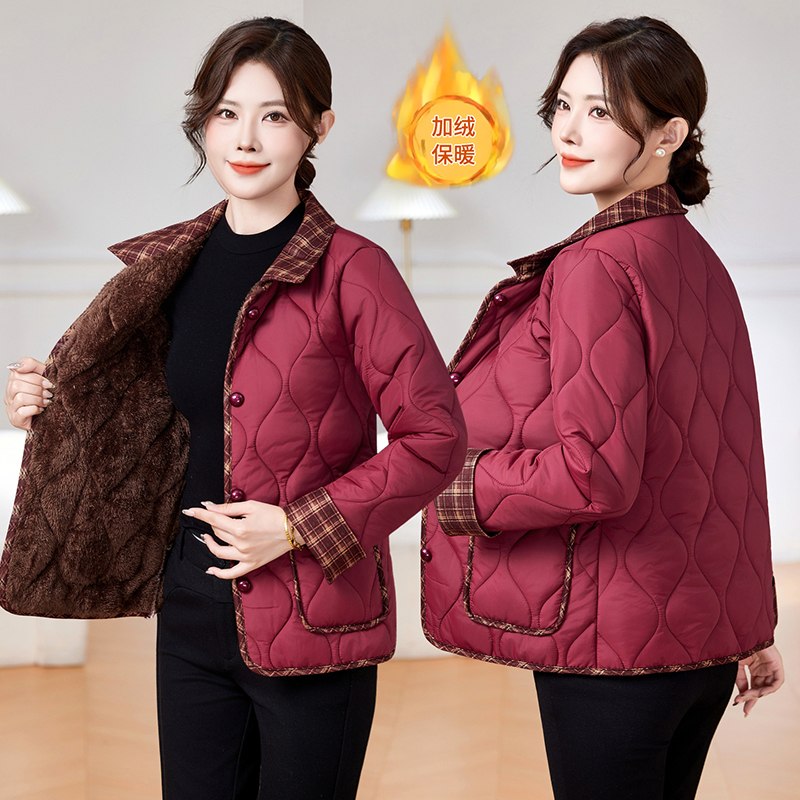 妈妈冬装新款加绒棉衣加厚保暖棉袄中老年女洋气短款翻领棉服外套