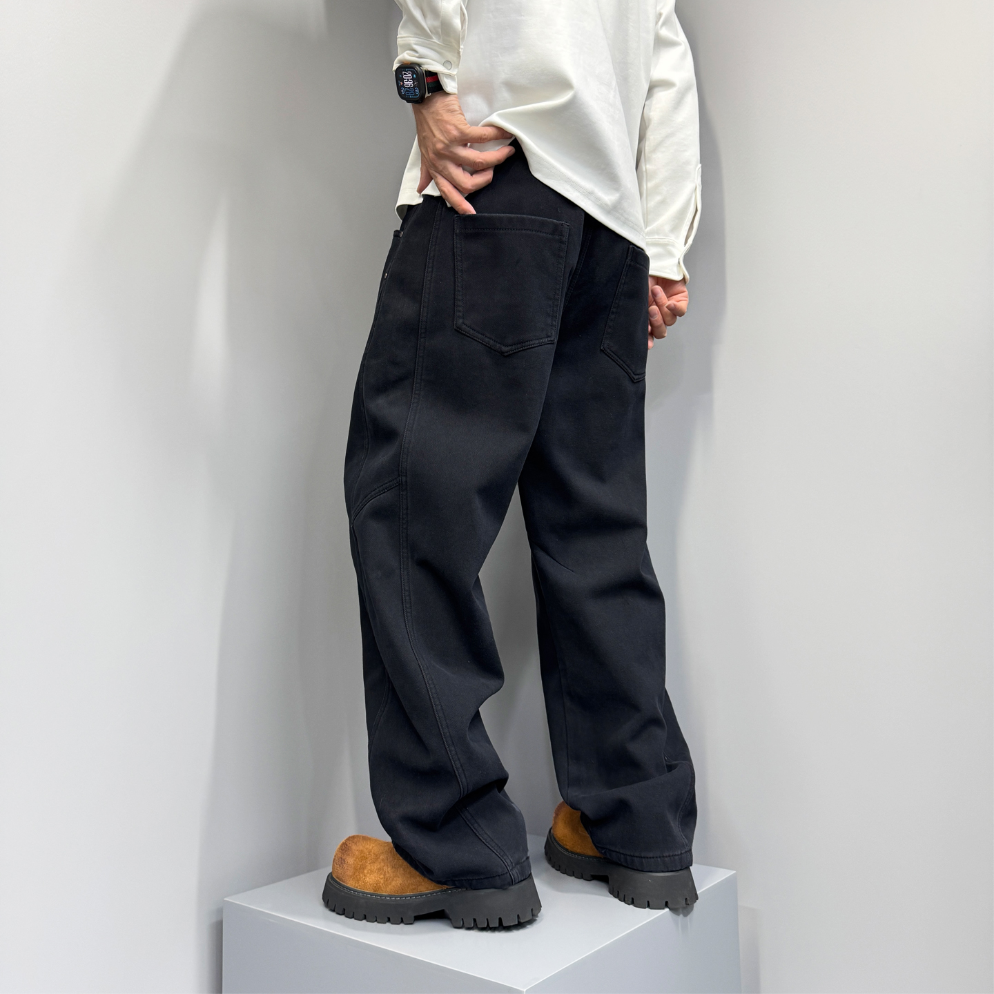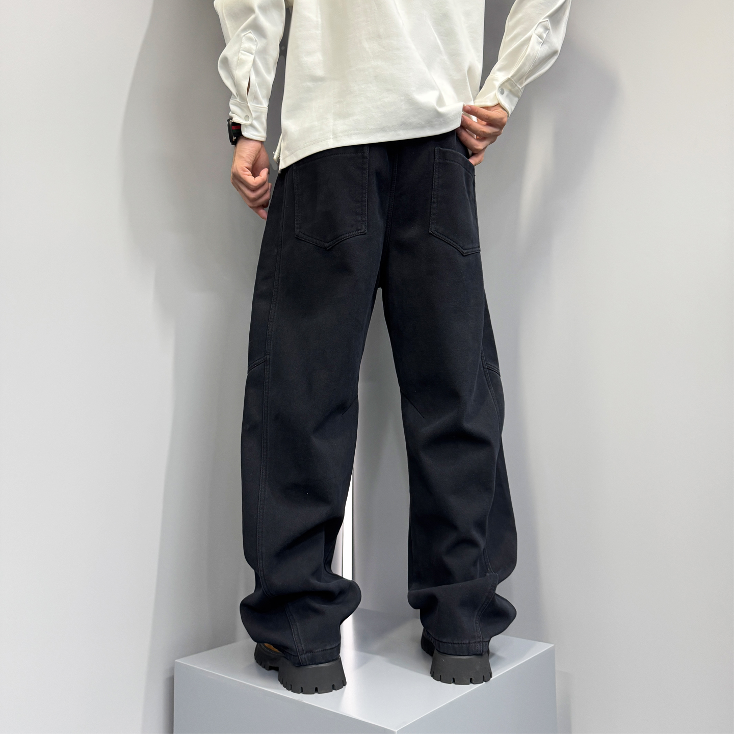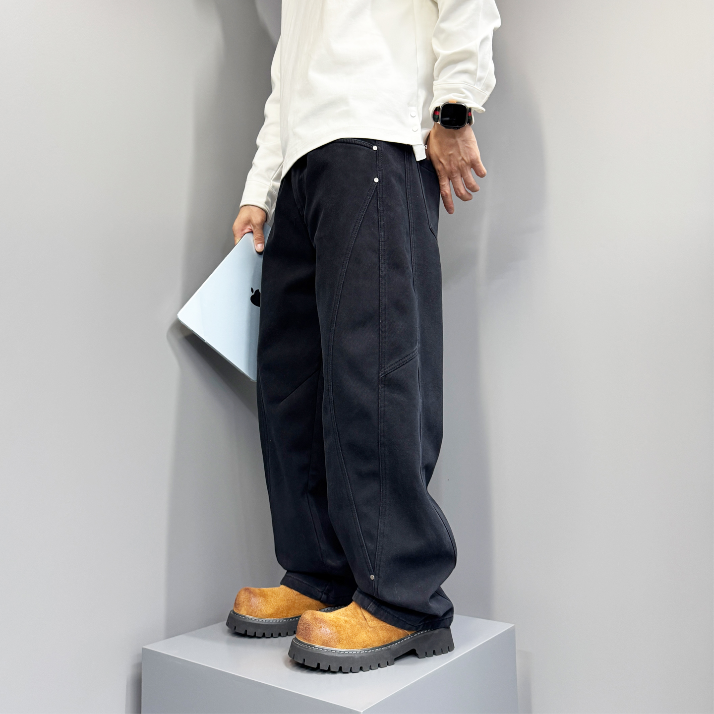 2025秋冬新款美式加绒弯刀休闲裤男宽松直筒拼接阔腿加厚运动长裤