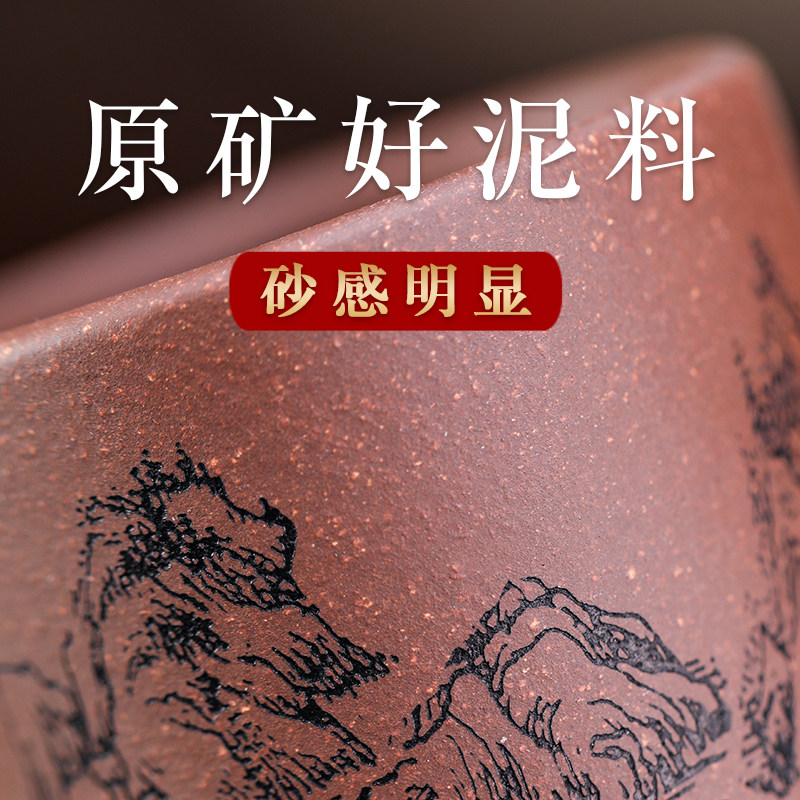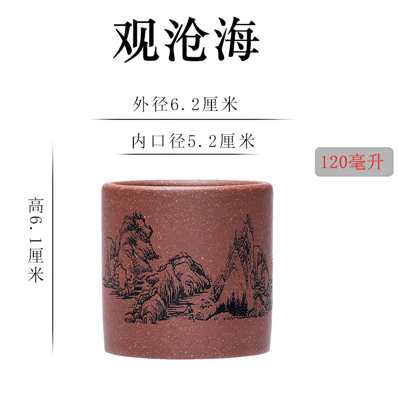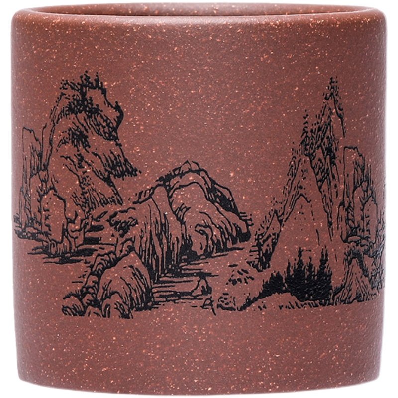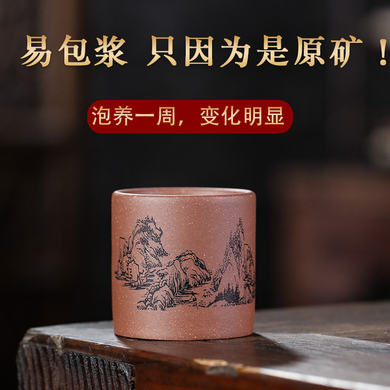 紫砂杯主人杯小杯宜兴紫砂壶刻绘山水品茗小茶杯原矿粗砂底槽清男