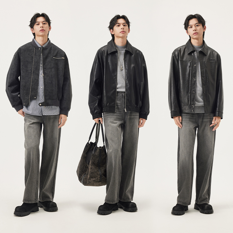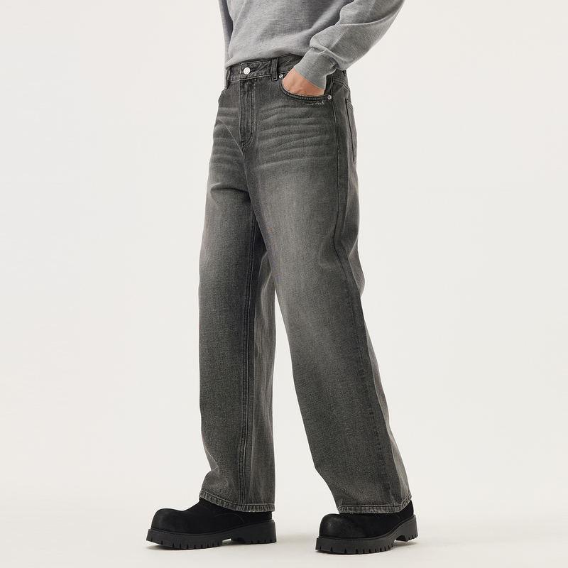 gxg.jeans男装 深灰色复古水洗宽松直筒牛仔长裤男裤 25年秋新品
