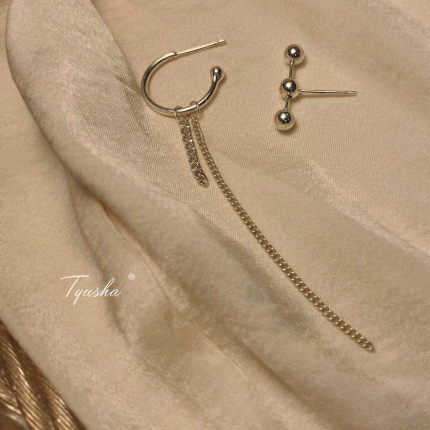 TYUSHA精致酷女孩/不对称耳钉S925纯银精致极简个性耳环耳圈耳线