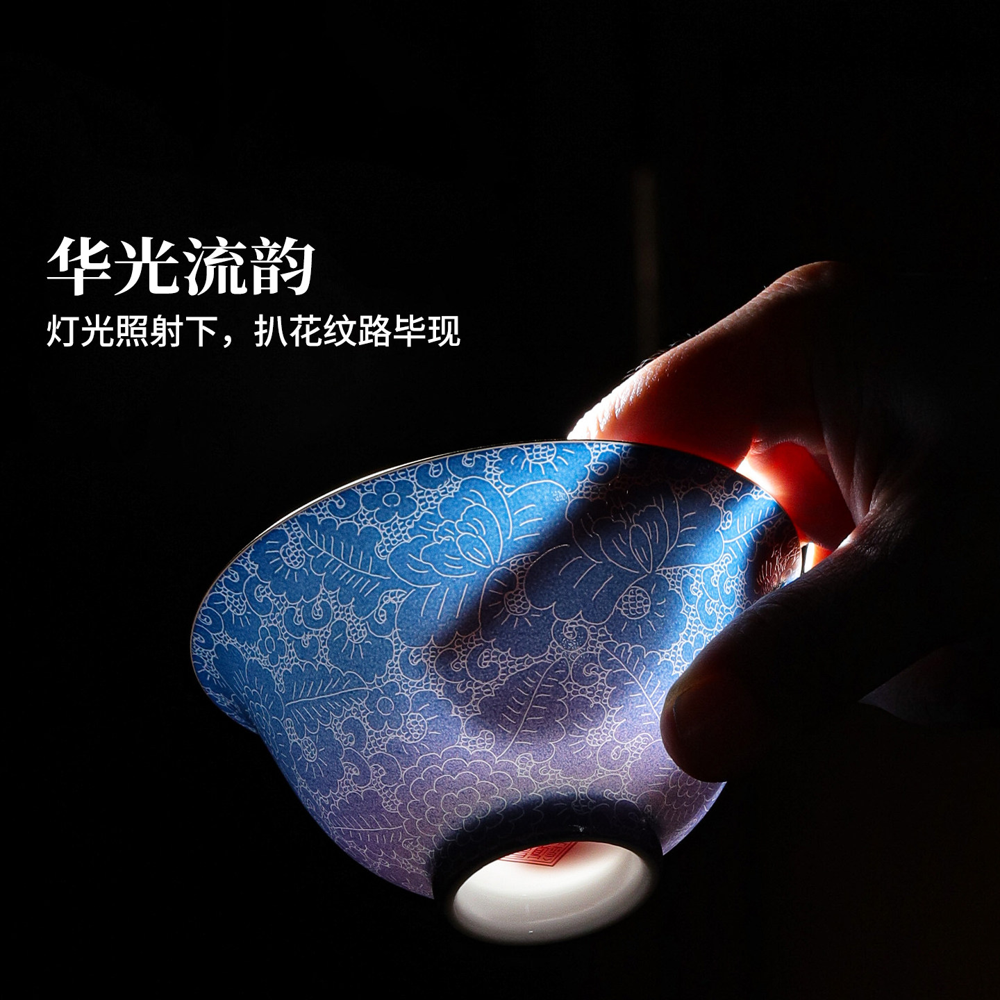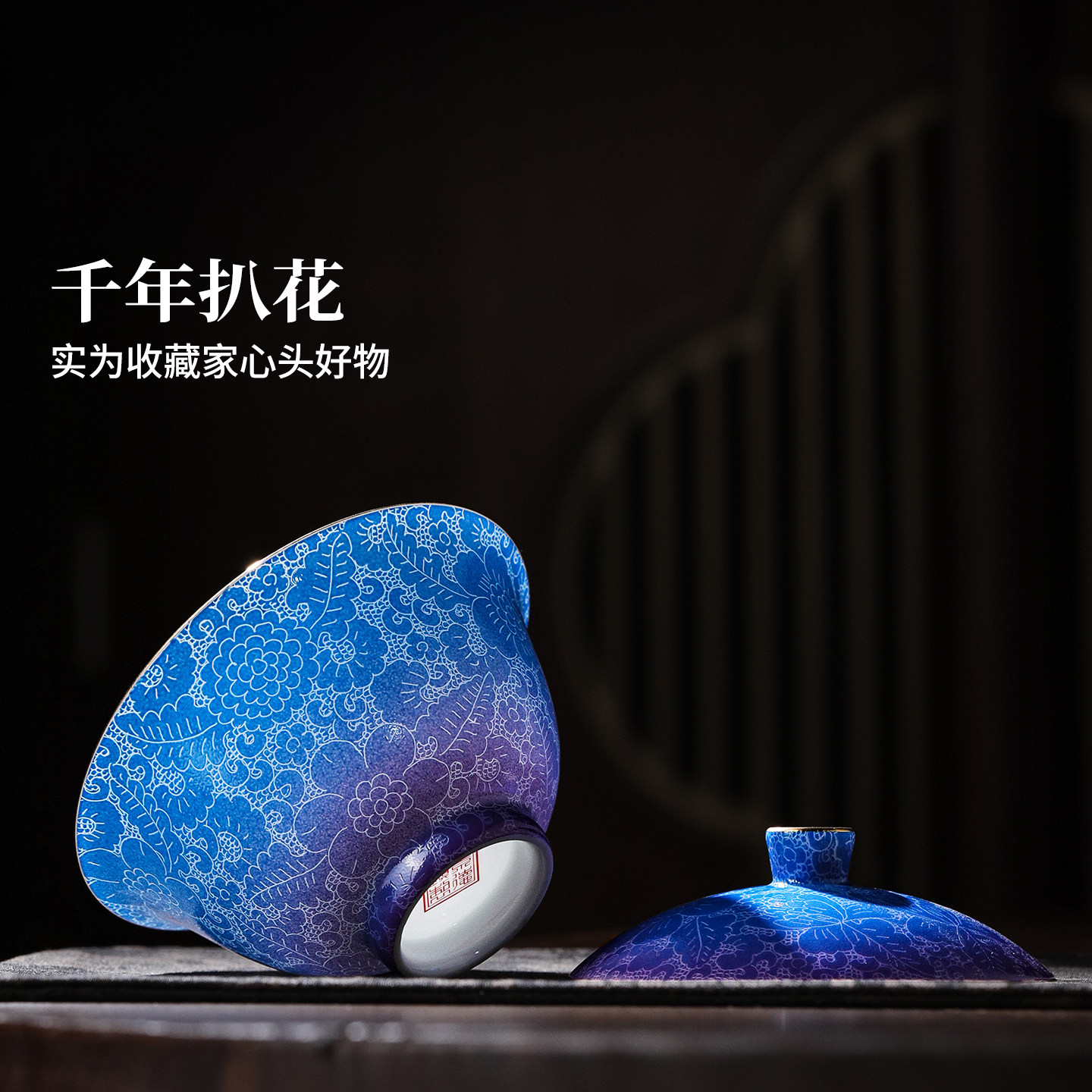 景德镇官方陶瓷紫色扒花盖碗茶杯功夫茶具泡茶碗高档礼盒装送长辈