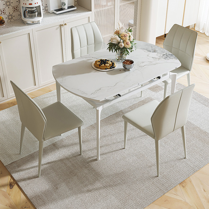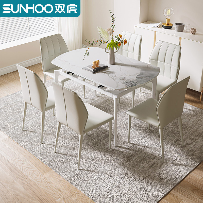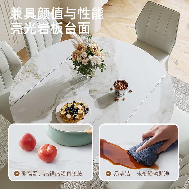 双虎可伸缩岩板餐桌可变圆桌现代简约轻奢奶油风小户型家用23103