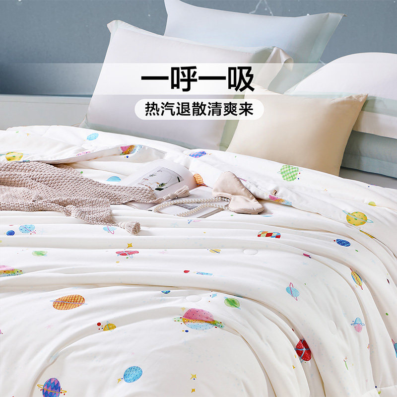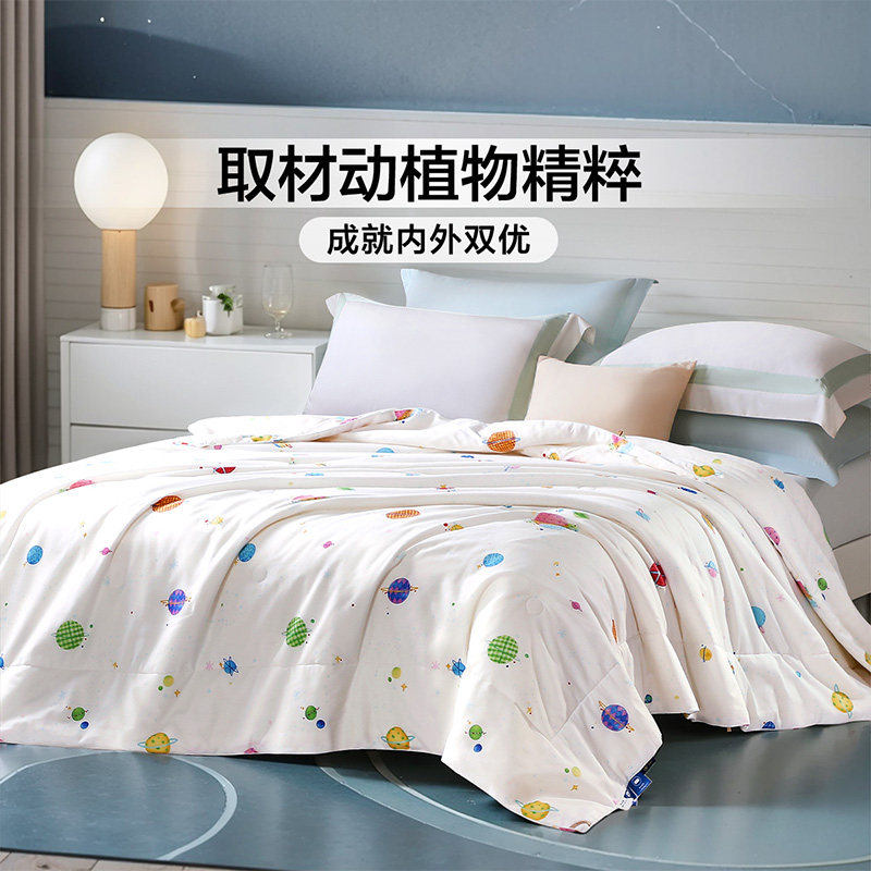 富安娜儿童蚕丝被100%纯棉面料学生宿舍二合一春秋四季抑菌冬厚被