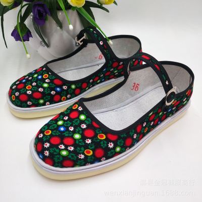 春夏秋冬季北京中老年人千层牛筋底花布鞋太太奶奶妈妈灯芯条绒工