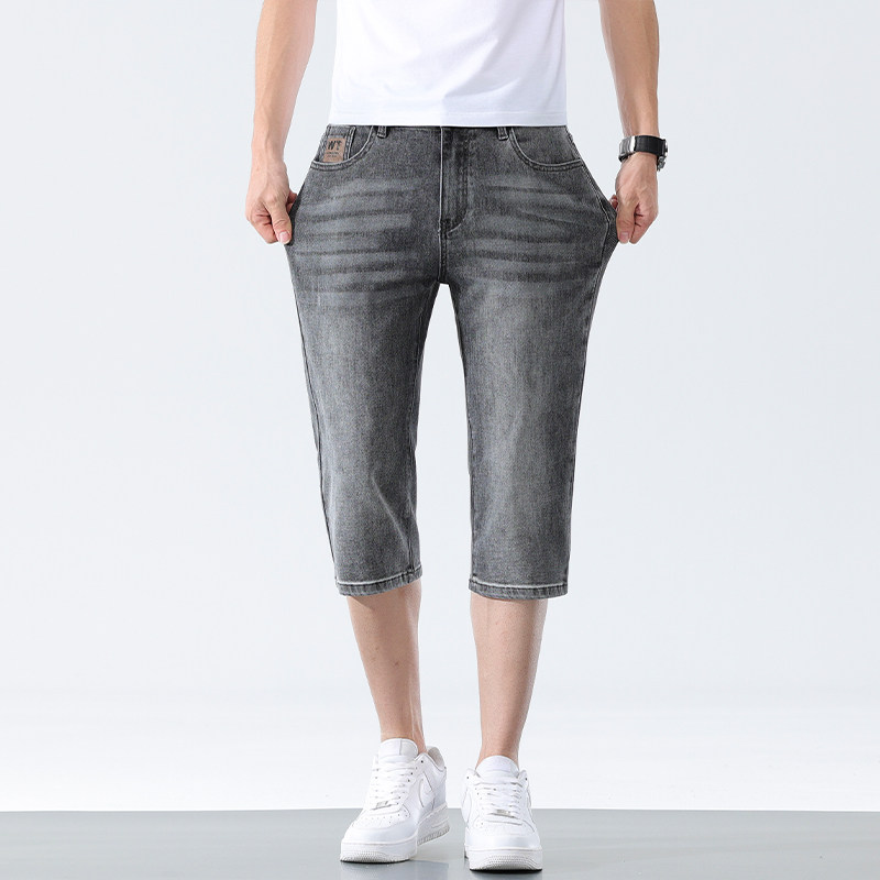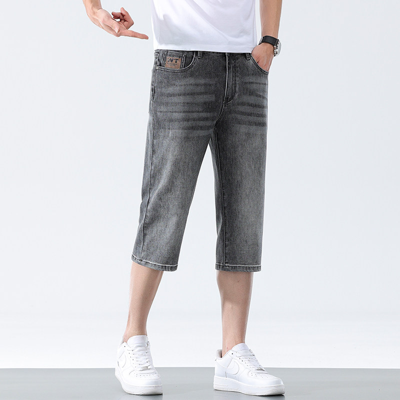 七分牛仔短裤男夏季超薄款宽松直筒马裤夏天7分裤子男士弹力中裤