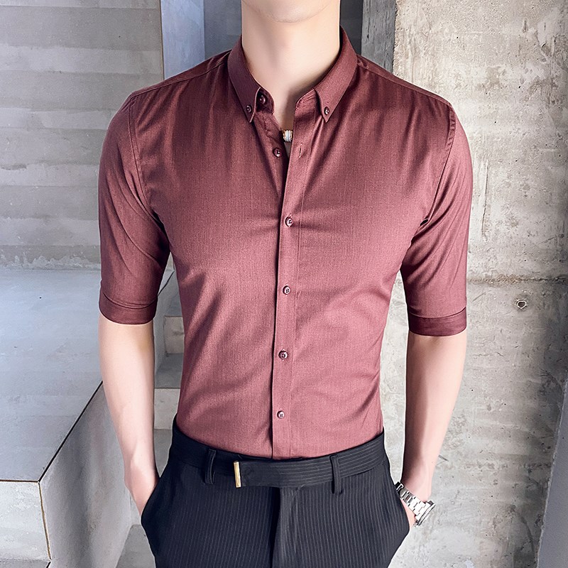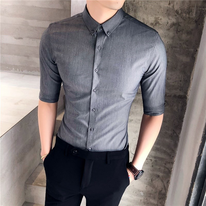 2024夏装新款 英伦免烫抗皱6色大码中袖衬衣修身七分袖衬衫男上衣