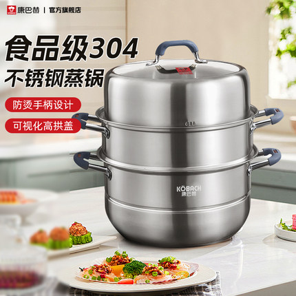 康巴赫蒸锅家用304不锈钢蒸笼蒸鱼馒头三层加厚电磁炉煤气灶通用