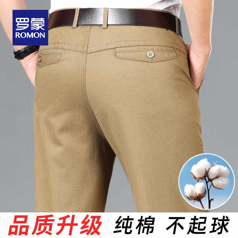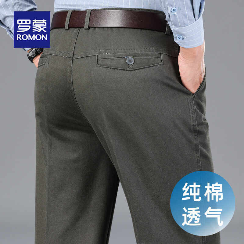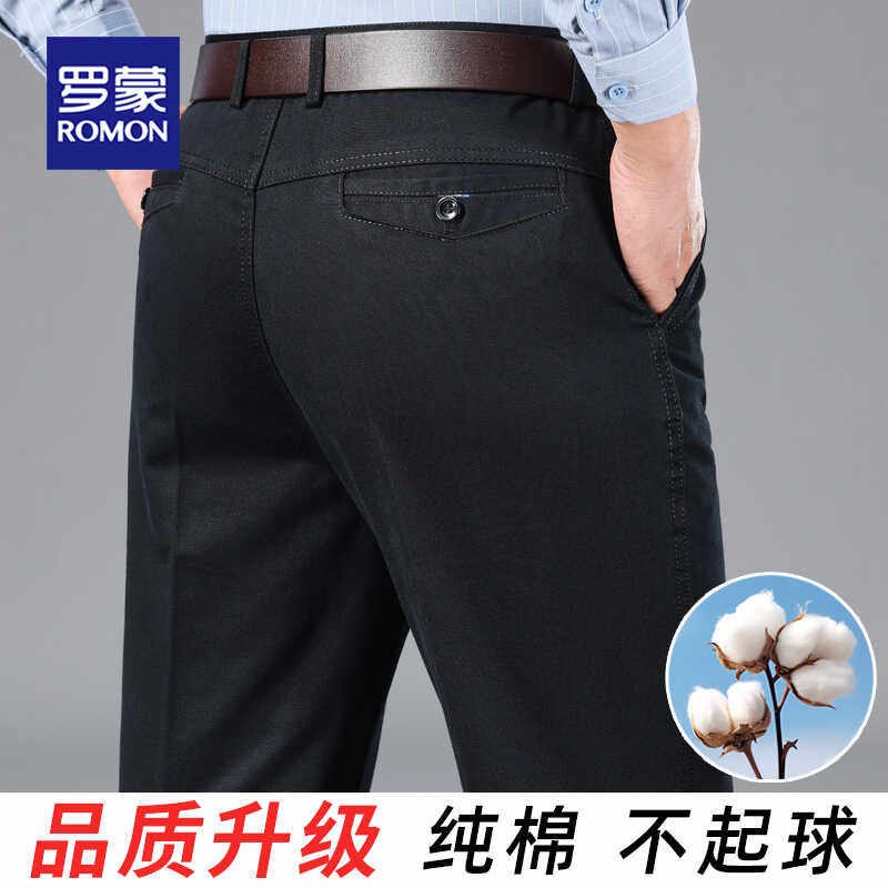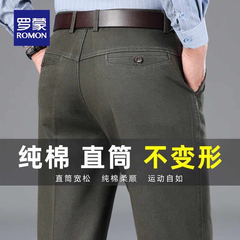 罗蒙纯棉休闲裤男宽松直筒中年爸爸装秋冬款男士商务西裤百搭长裤