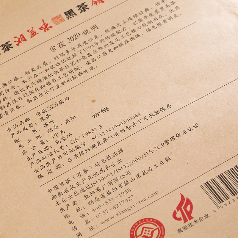 湘益茯茶砖茶3kg宗茯湖南益阳安化黑茶花砖茶2020年传统金花茯砖