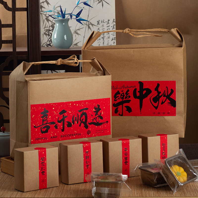 2025复古礼品手拎袋牛皮纸袋烘焙食品手提包装盒回礼大礼包定制