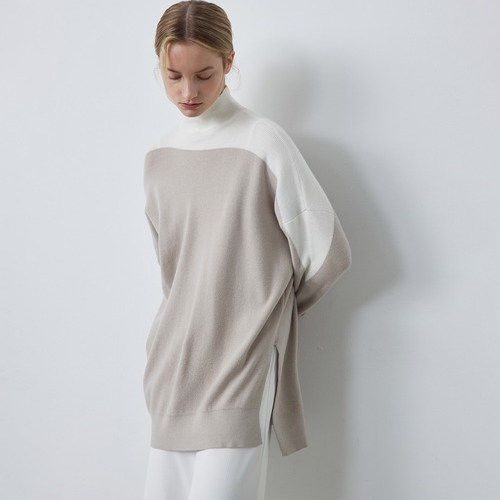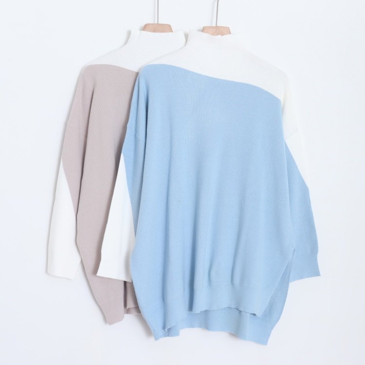 D07017日单秋冬新款1.32W日元高领套头弹性好宽松女撞色中长毛衣