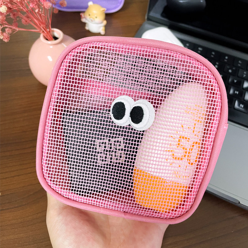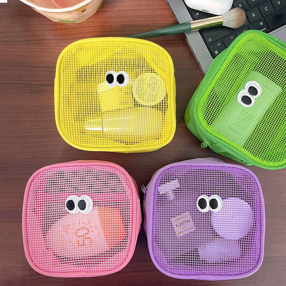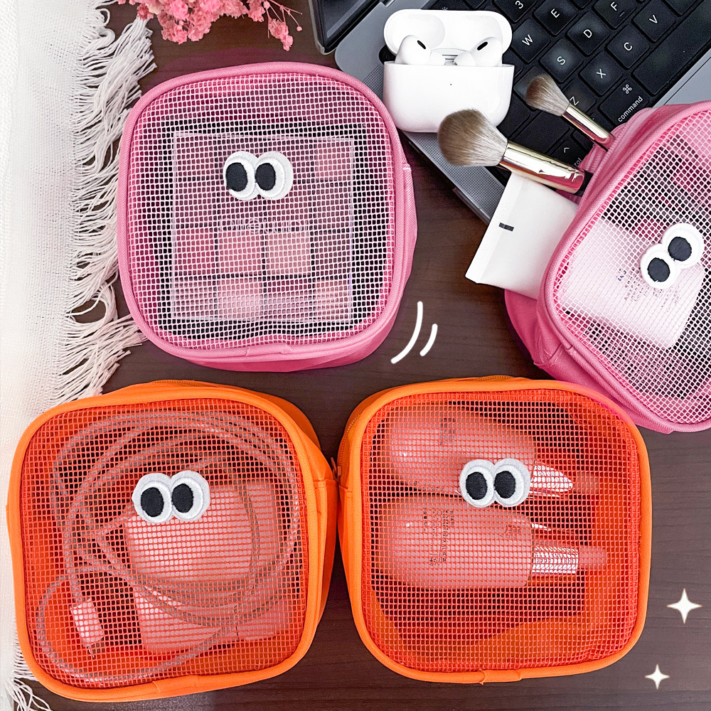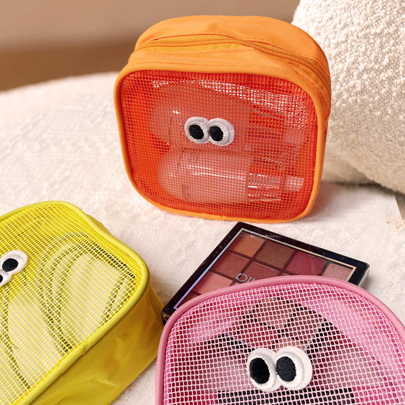 韩版ins网纱大眼睛化妆包多巴胺配色便携迷你化妆袋豆豆眼口红包