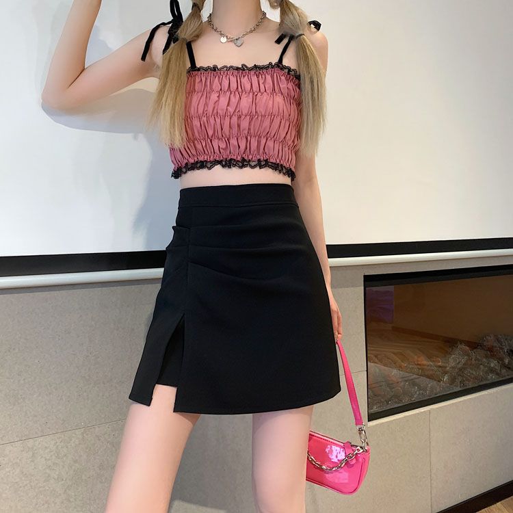 百搭开叉包臀裙A字半身裙女夏季2025新款高级感小个子高腰短裙子