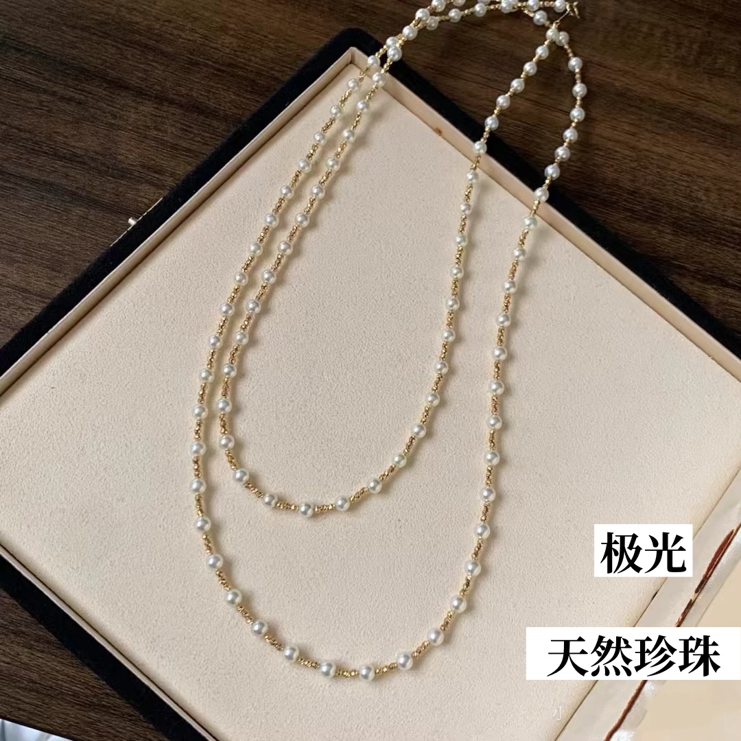 天然淡水珍珠!设计款小米珠Baby珠双层叠戴秋冬毛衣链项链锁骨链