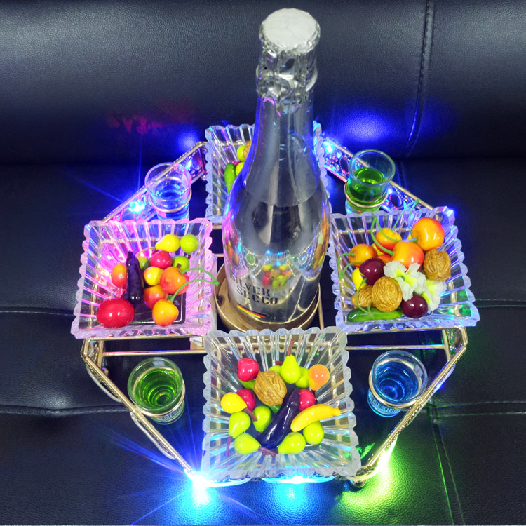 KTV酒吧夜场LED充电七彩发光铁艺六边形香槟酒座杯架四果盘三合一