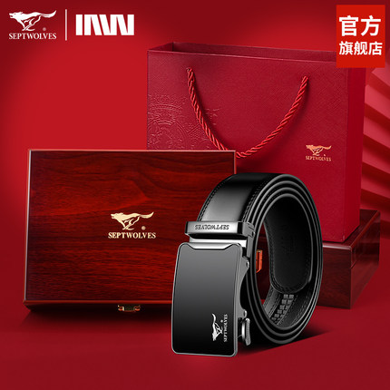 七匹狼皮带男士真皮腰带礼盒生日礼物高档品牌正品情人节礼盒裤带
