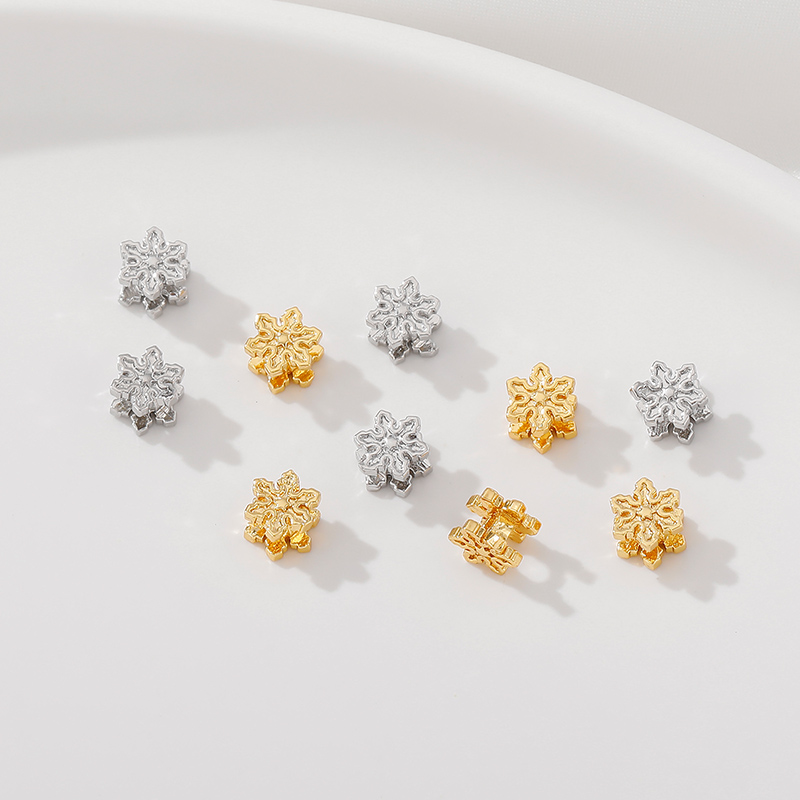 18K包金立体双面雪花隔珠散珠