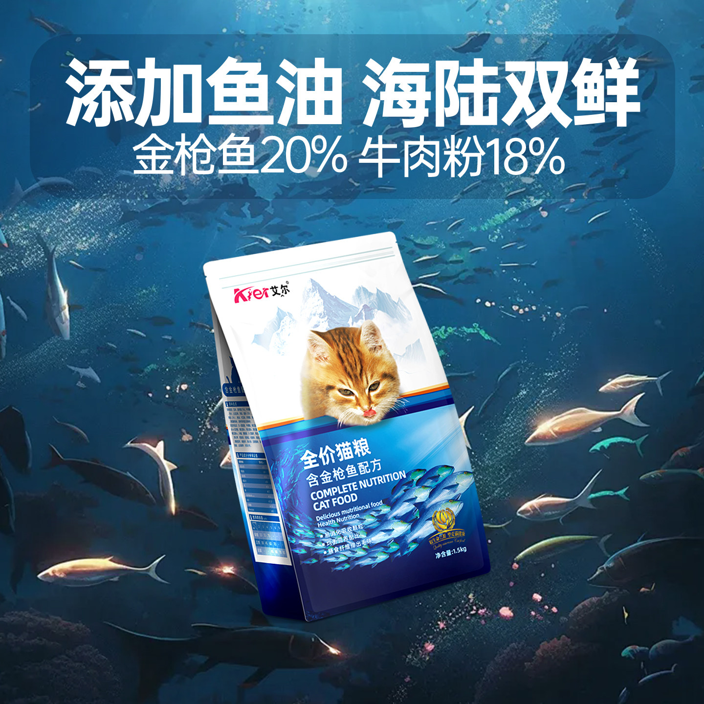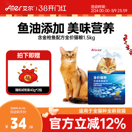 艾尔金枪鱼全价猫粮1.5kg 猫粮幼猫营养鱼味猫主粮3斤官方旗舰店